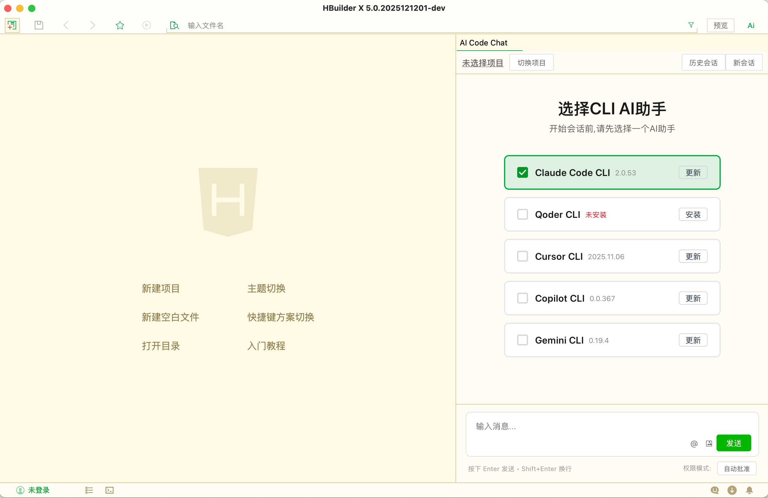 重要提示:HBuilderX AI Chat 插件不提供自动安装功能,您需要在命令行中手动安装各个 AI CLI 助手。