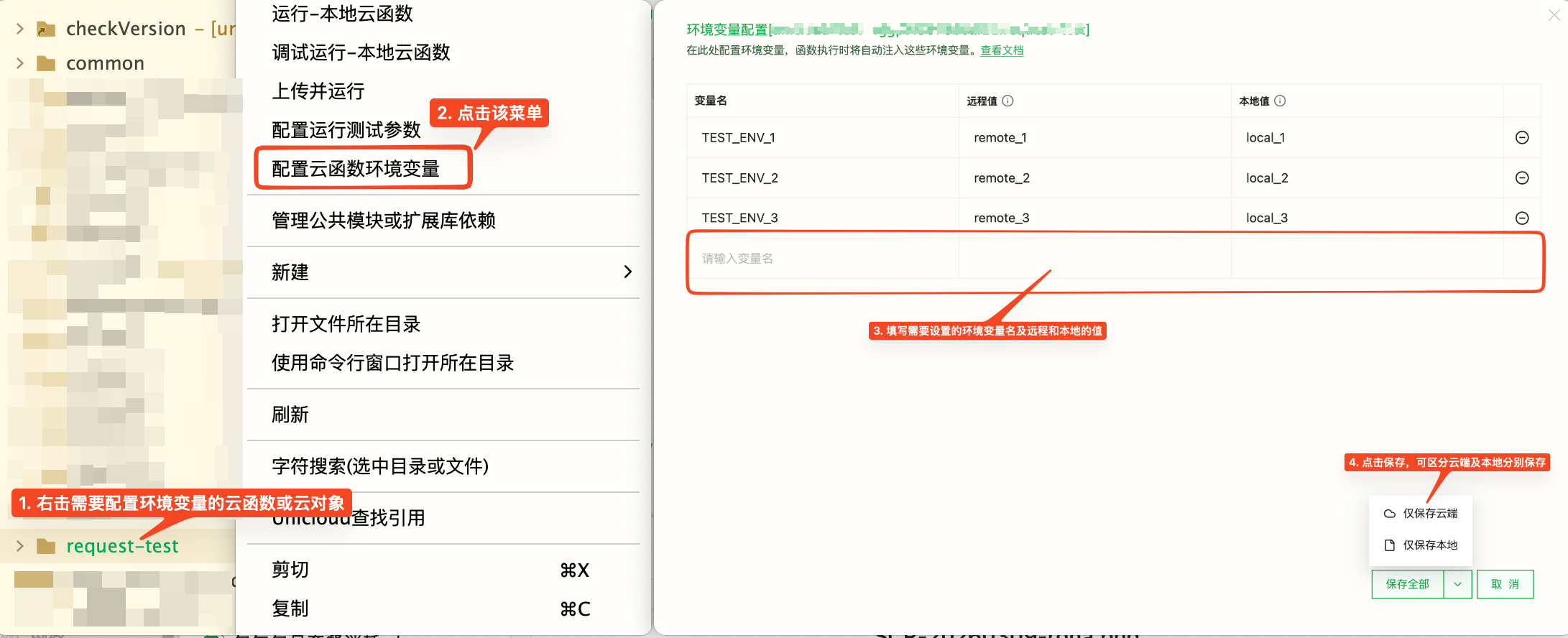 - 云函数/云对象右击选择“配置云函数环境变量”