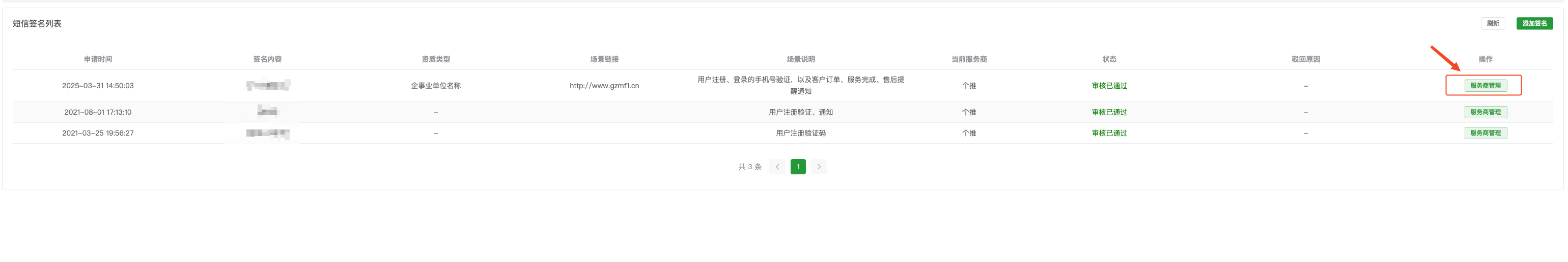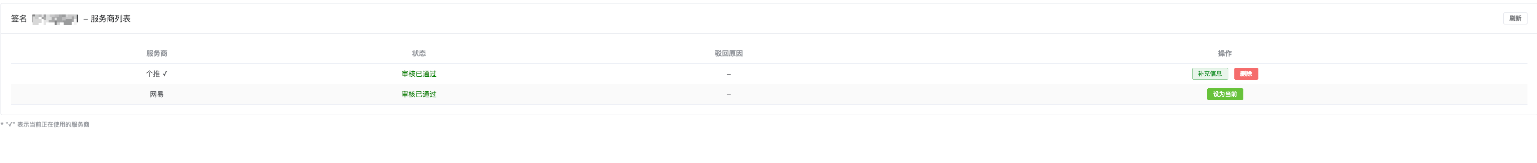 在服务商管理页面,可以查看该签名下所有服务商的状态: