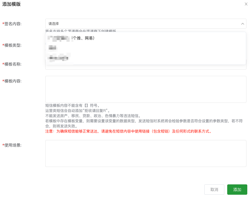 短信模板是短信的具体内容格式,支持使用变量参数实现动态内容。目前短信签名创建后可立即前往创建短信模板,无需等待签名审核通过,且添加短信模板可提高签名审核通过机率。