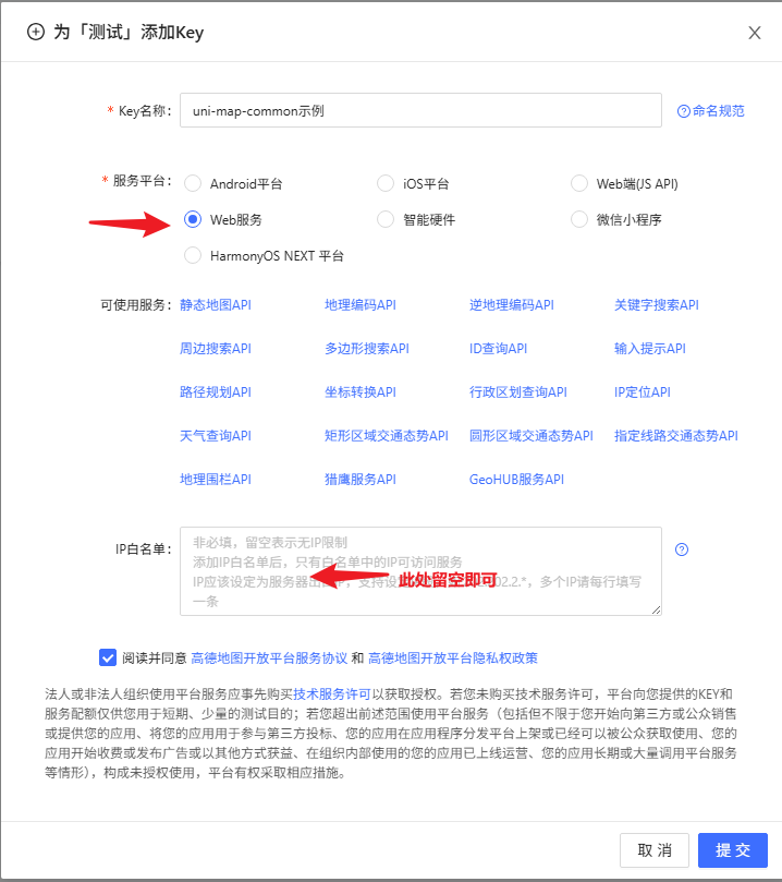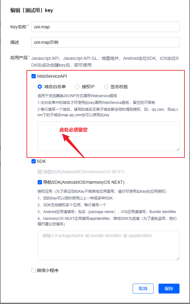 | uni-map-common | 199 | 此key未开启webservice功能 |